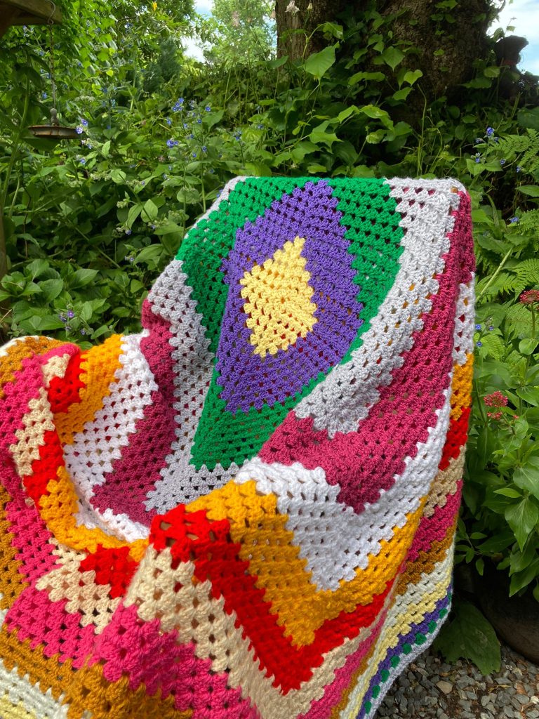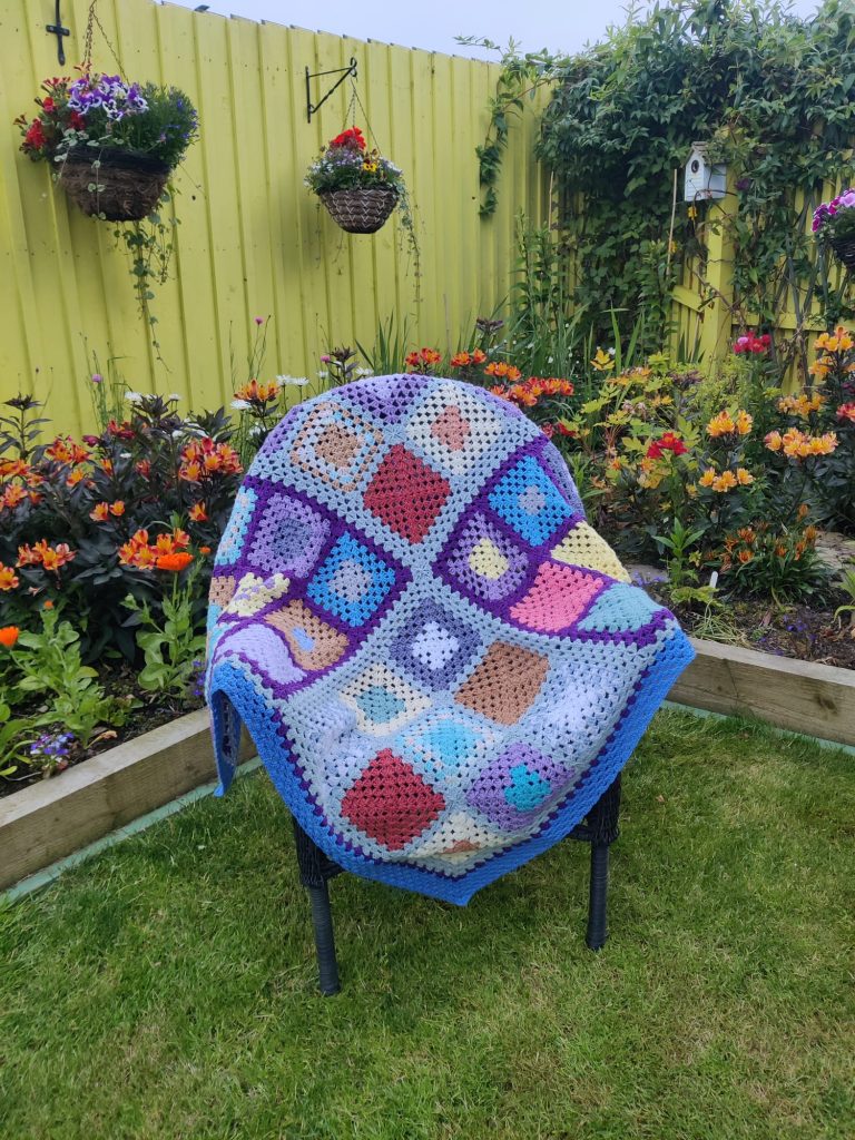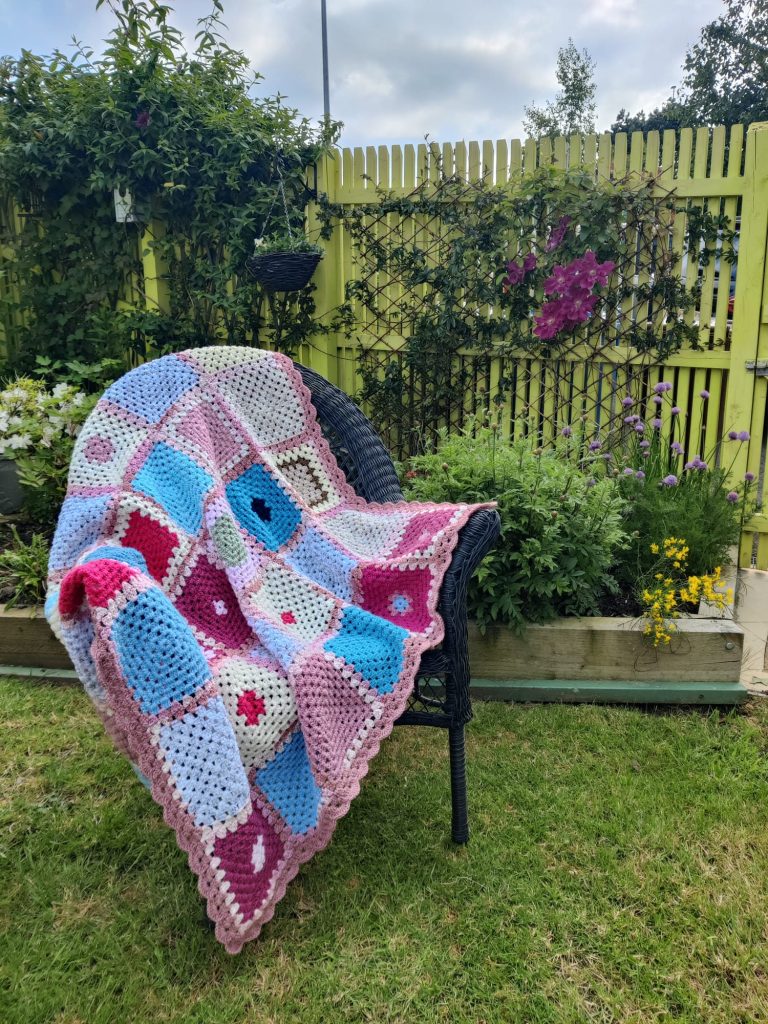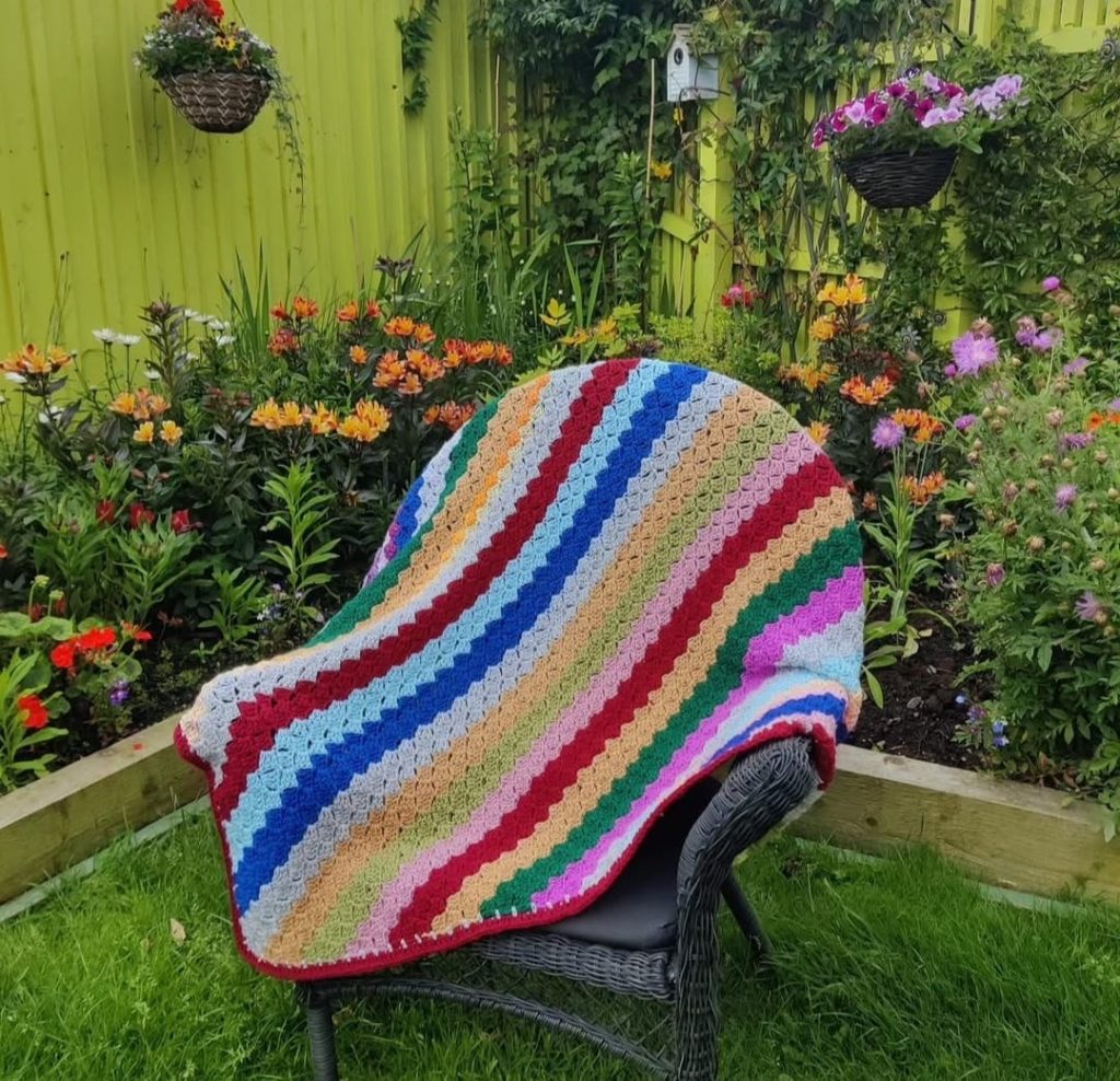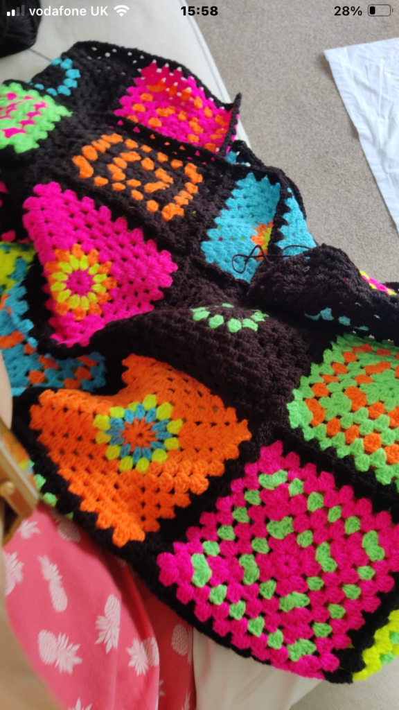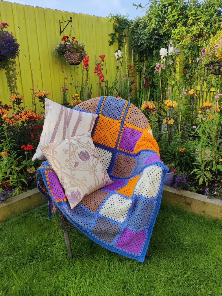 Ever wondered what all the squares look like when they are joined up ? We have lots of wonderful donations of knitted and crochet squares that we either sew or crochet together, some blankets come already joined which is great and others we have the fun of making up ourselves . Sometimes we include a cushion with the blanket which we are able to make from fabrics kindly donated by “Mad about Fabrics ” .I think you will agree they all look stunning and will add a bit of colour and warmth to the lucky recipient.