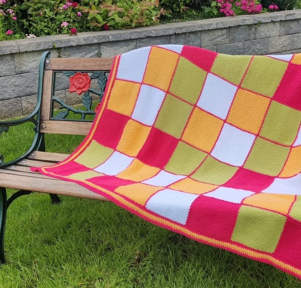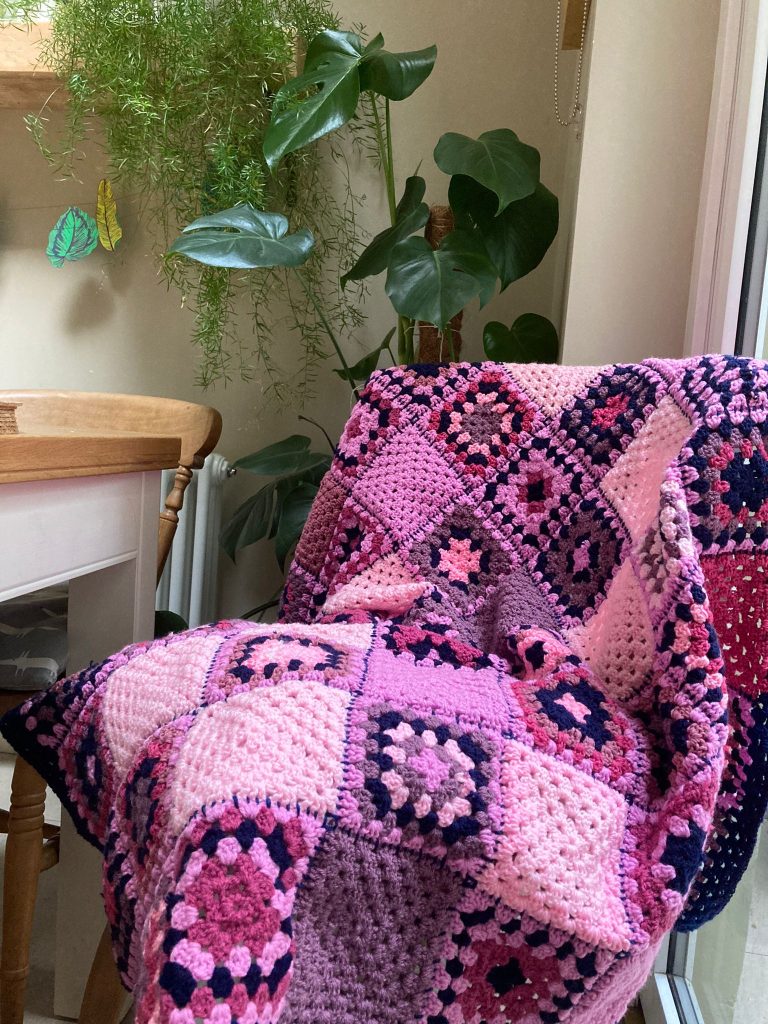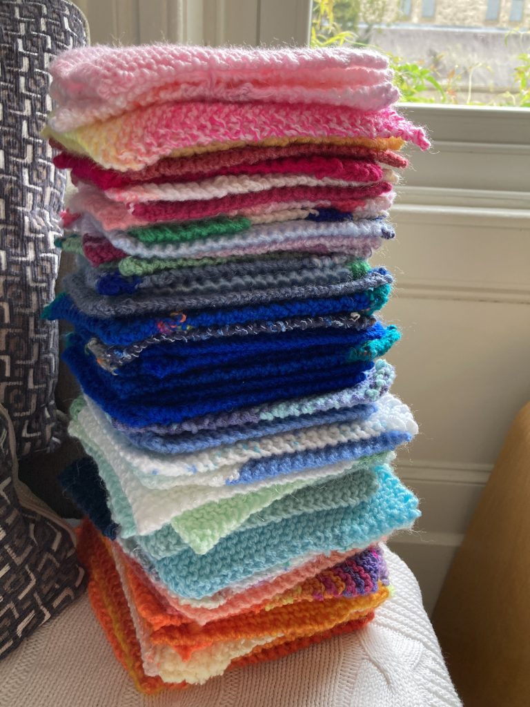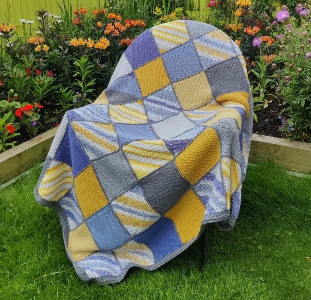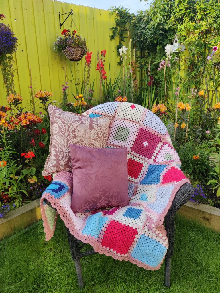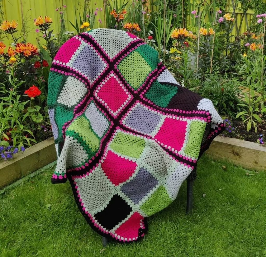 Ever wondered what all the squares look like when they are joined up ? We have lots of wonderful donations of knitted and crochet squares that we either sew or crochet together, some blankets come already joined which is great and others we have the fun of making up ourselves . Sometimes we include a cushion with the blanket which we are able to make from fabrics kindly donated by “Mad about Fabrics ” .I think you will agree they all look stunning and will add a bit of colour and warmth to the lucky recipient.